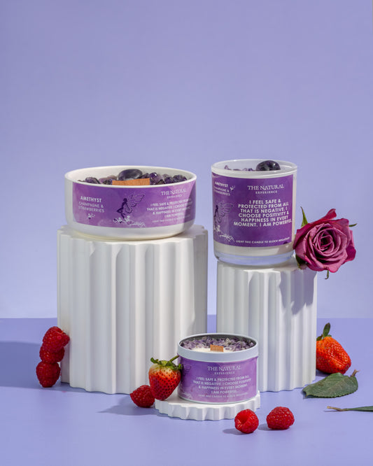 Amethyst Crystal Candles - Negativity Blocker - Champagne and Strawberries