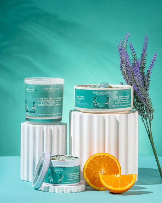 Amazonite Crystal Candle for Manifestation – Fresh Sea Breeze
